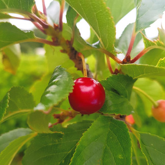 Patio cherry's are the quintessential sweet red dessert cherry. Their flesh is firm and their flavour is superb. See them below... sweet and small.